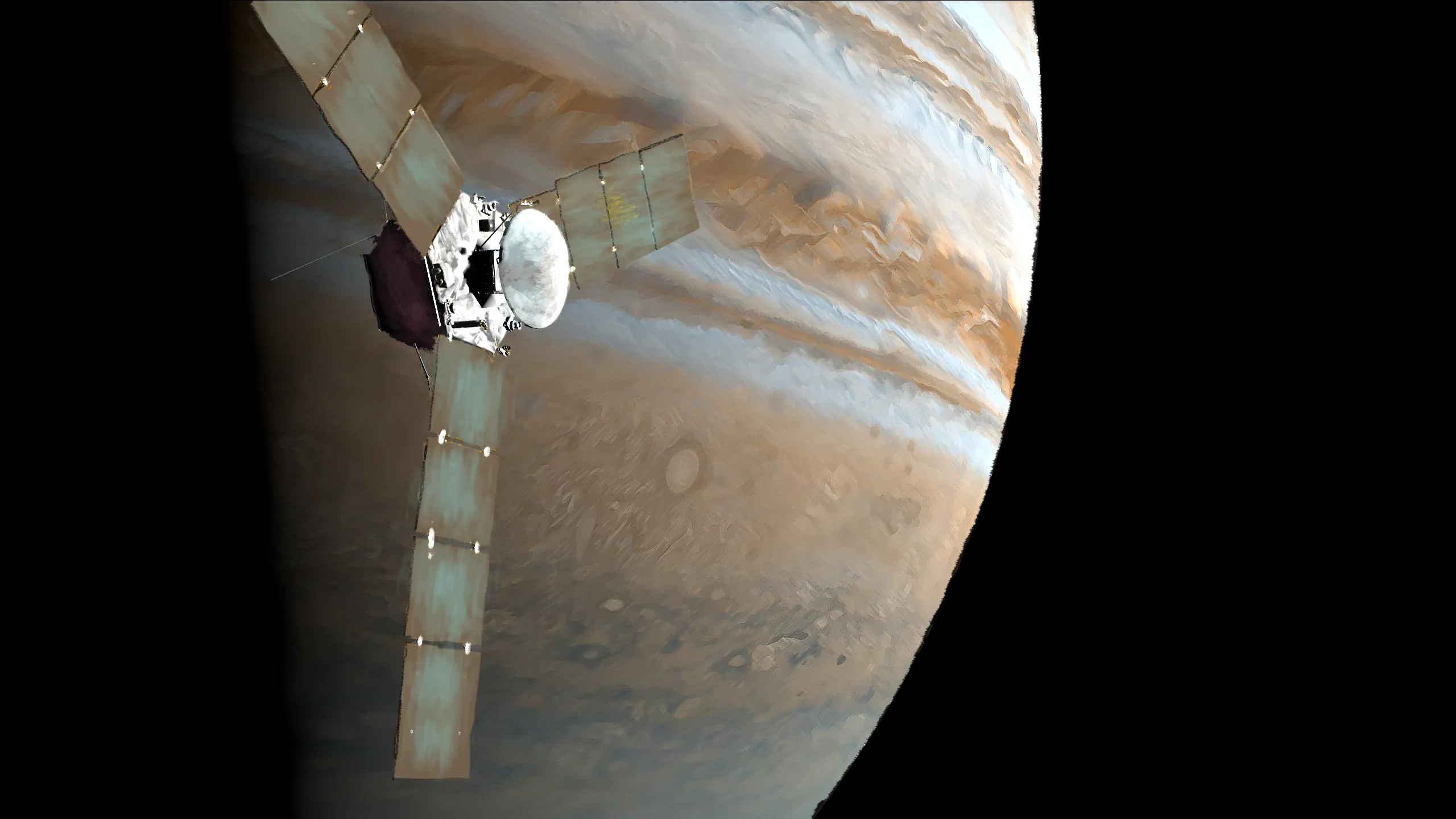 For Juno, I didn't really get the colors right, but I'll chalk that up to the desaturating environment of space. If you look carefully, you can see a bit of Jupiter-shine on the backside, itself reflected off the backside of the solar panels. The thing on top is some kind of foil-covered antenna.