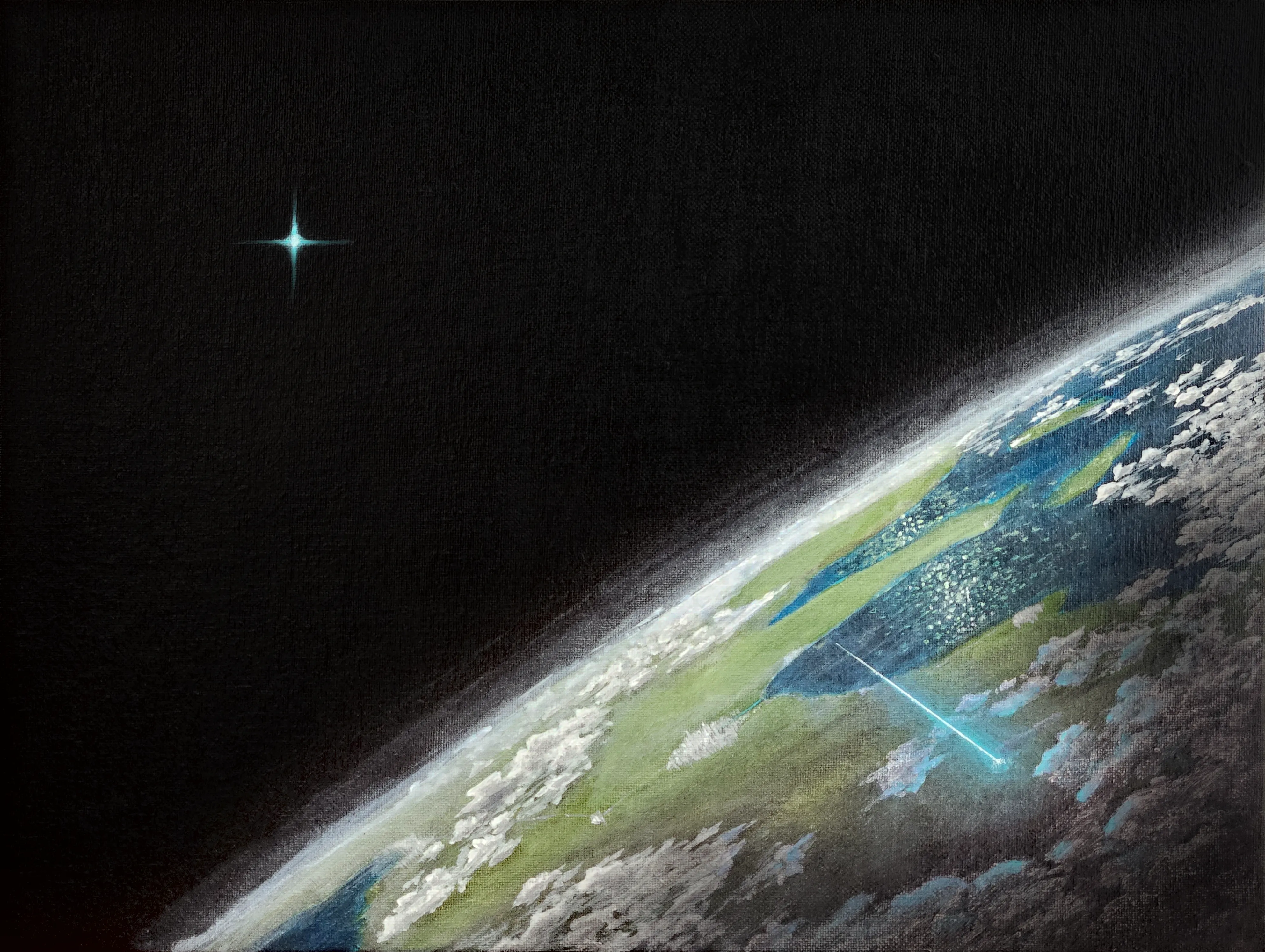 Artistically, this is an acrylic painting. Because the painting is larger, I was unable to scan it. I used a 3⨯ zoom lens to photograph it and cleaned it up with Krita filters. It was a particular challenge since I used high-gloss varnish—in person, this makes the blacks darker, but is difficult to photograph. The result is fairly close to the original but alas still seems to be missing a certain energy.