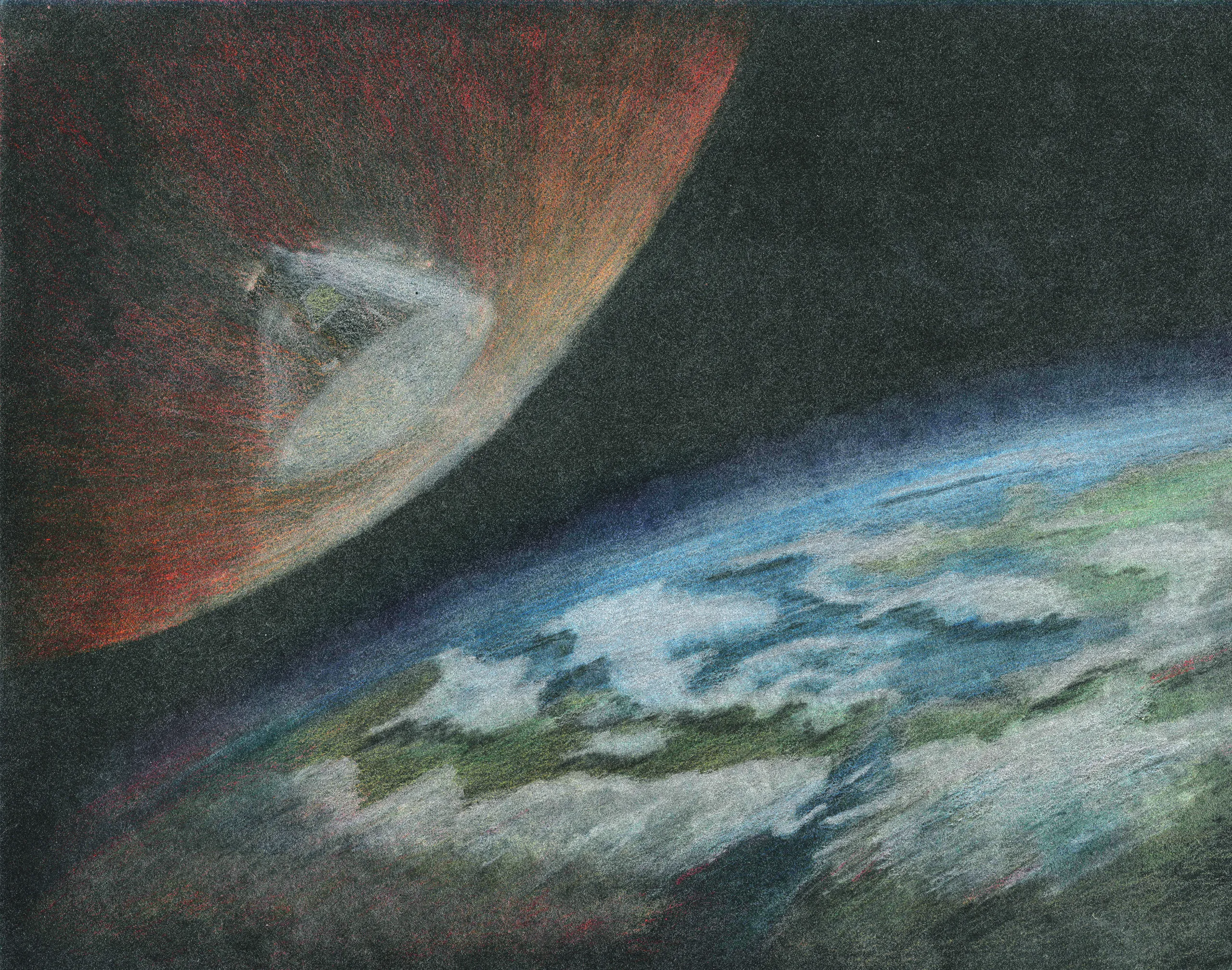 In real life, the picture looks better than the previous I've made. However, when scanning, the graininess issues plaguing the previous scans actually get worse, and also everything gets desaturated for some reason. I had to work pretty hard in photoshop to get it to look more like the original. The heat shield in particular is actually supposed to be white-hot at this point; I blame the scanner for not capturing the intensity correctly.
