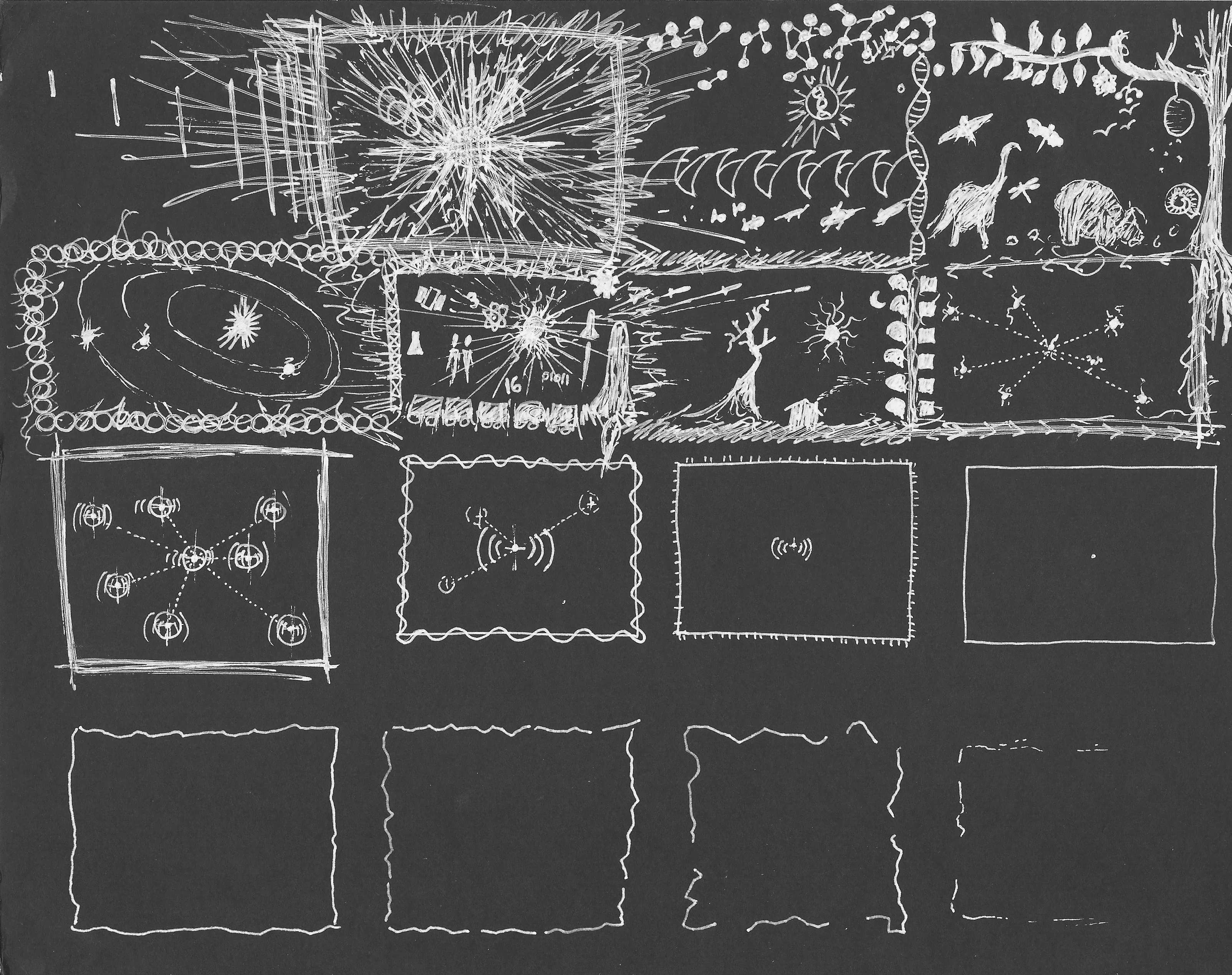 This was inspired by vaguely nihilist talk from an acquaintance. I wasn't entirely sure what I was going for. I just started drawing and writing, and this is what happened. The stars weren't even supposed to be Dyson spheres, until I realized I had drawn them as Dyson spheres. The frames relate to their contents, which also wasn't planned. I'd also have spaced them better and maybe added some alpha to the image for meta.