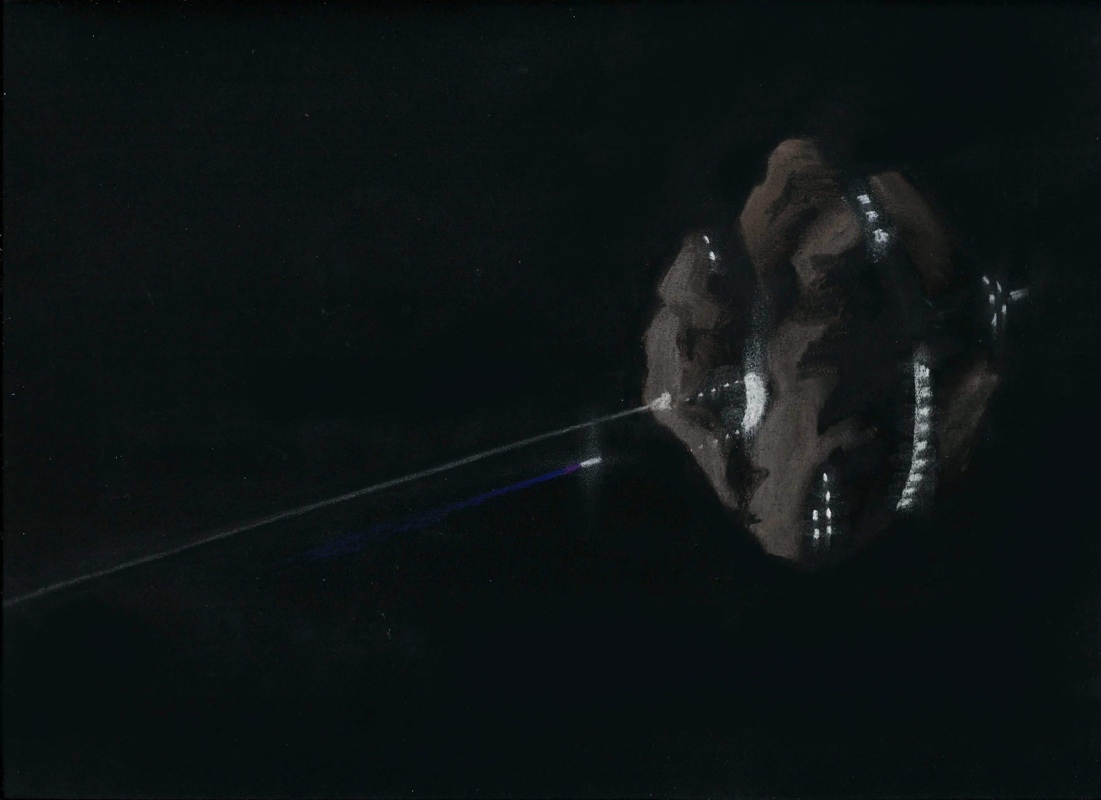 Artistically, this is just colored pencil on black construction paper with a bit of cleanup after scanning. There is a hint of Earthshine in the original, but the scan has washed it out. The smudges are supposed to be diffraction spikes.